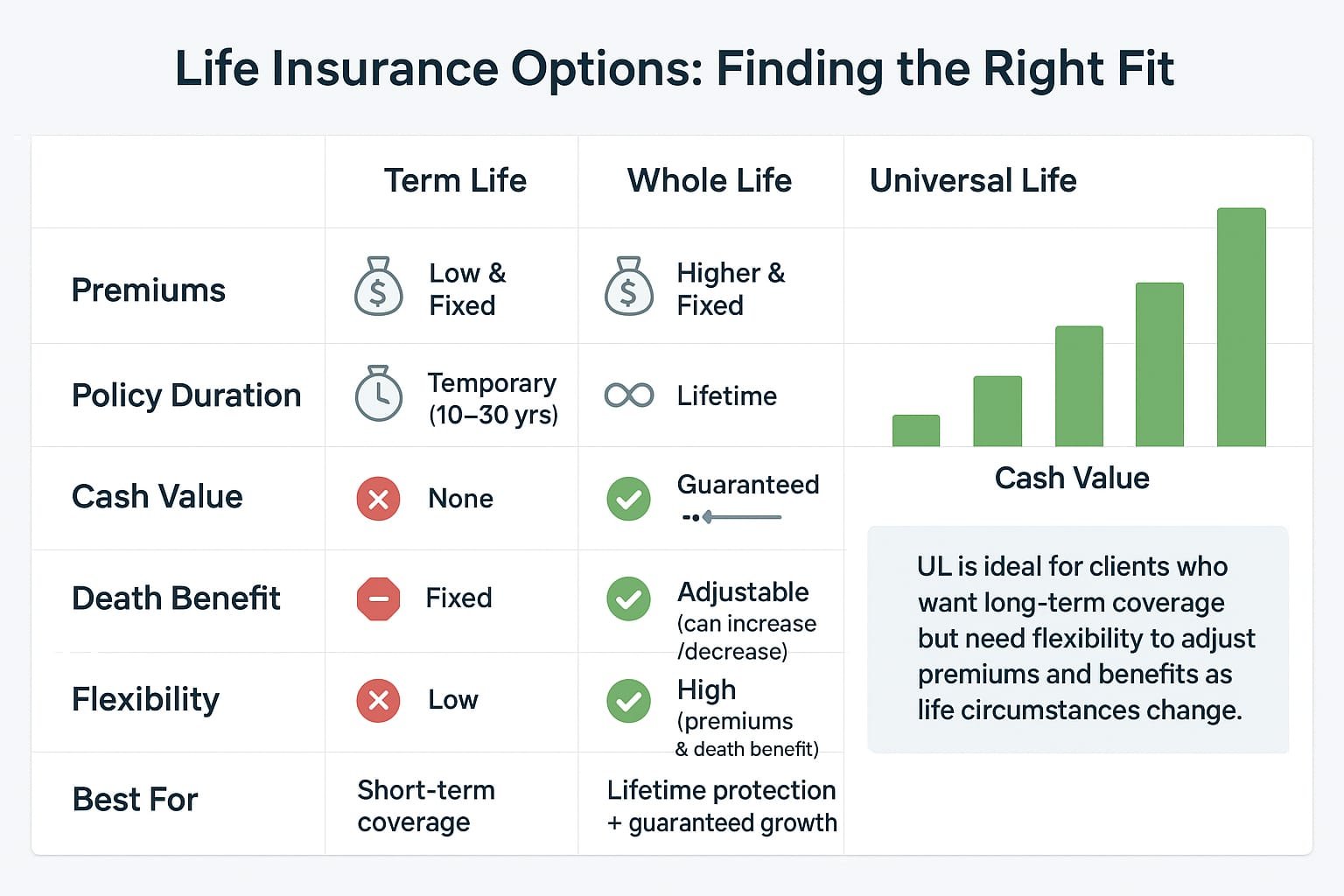 Choose from Term, Whole, or Universal Life coverage to match your needs.